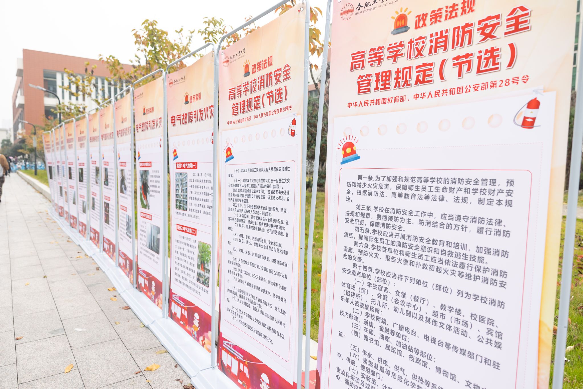 为强化学生消防安全意识,切实提升学生应急避险与自救互救能力,11月9日,在第34个全国消防日来临之际,学校在屯溪路校区和翡翠湖校区同时开展了主题为 “全民消防、生命至上——安全用火用电”主题宣传教育活动。