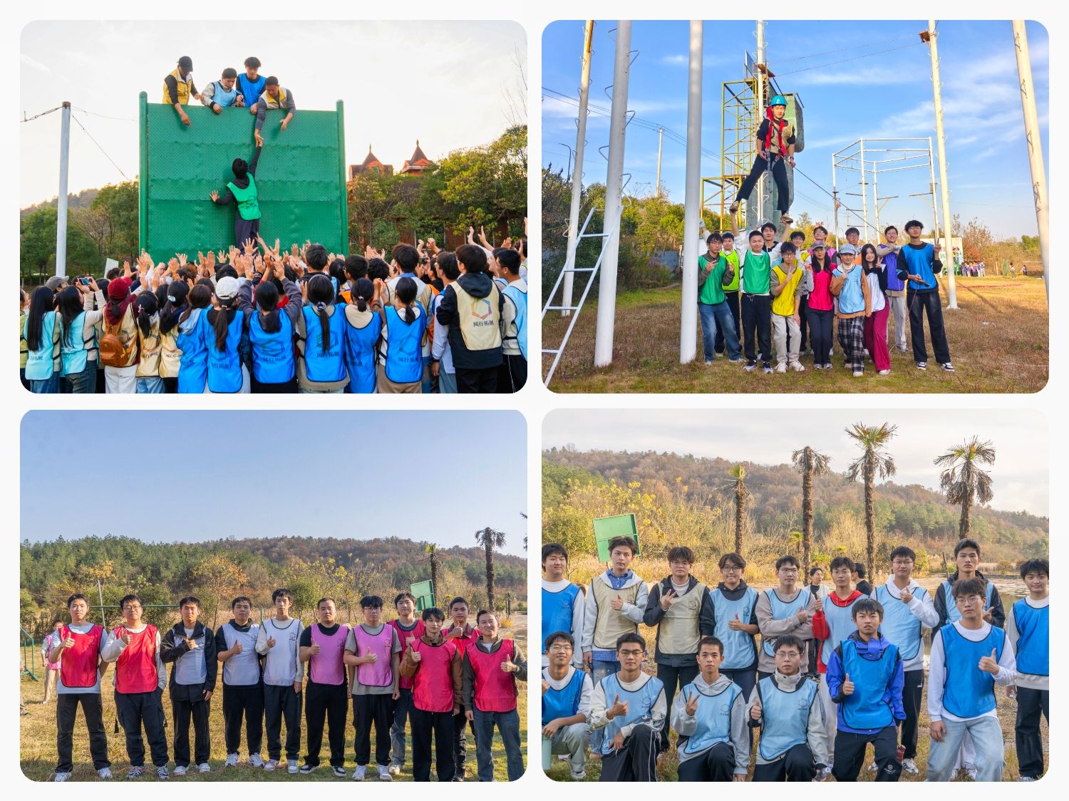 本次素质拓展紧扣团队信任、勇气挑战、沟通协作核心主题,精心设计系列沉浸式体验项目。活动伊始,同学们通过游戏趣味破冰活动迅速拉近人际距离,高效完成团队组建与分工。在“沙场点兵”项目中,各团队精准制定策略、高效沟通配合,以默契协作与精准执行凝聚制胜合力;“信任背摔”环节,参与者在向后倾倒的瞬间,切身感受同伴坚实臂膀的支撑,深刻体悟双向奔赴的信任真谛;在“高空抓杠”挑战项目中,大家直面内心胆怯、突破自我设限,在队友们的加油鼓劲声中奋勇一跃,完成自我超越的精彩蜕变;“动力圈”项目里,全体成员手拉手围成圆圈,以整齐划一的节奏同步发力,在绳圈的起伏律动中感受团队协作的磅礴力量,将活动氛围推向高潮;最终的“毕业墙”环节,同学们秉持无私奉献精神,有人甘当人梯托举同伴,有人奋力拉拽助力登顶,用实际行动诠释了众志成城的团队精神。所有项目均采用分组轮换形式有序开展,确保每位同学都能深度参与、充分体验,在实践中锤炼协作能力、筑牢信任根基。