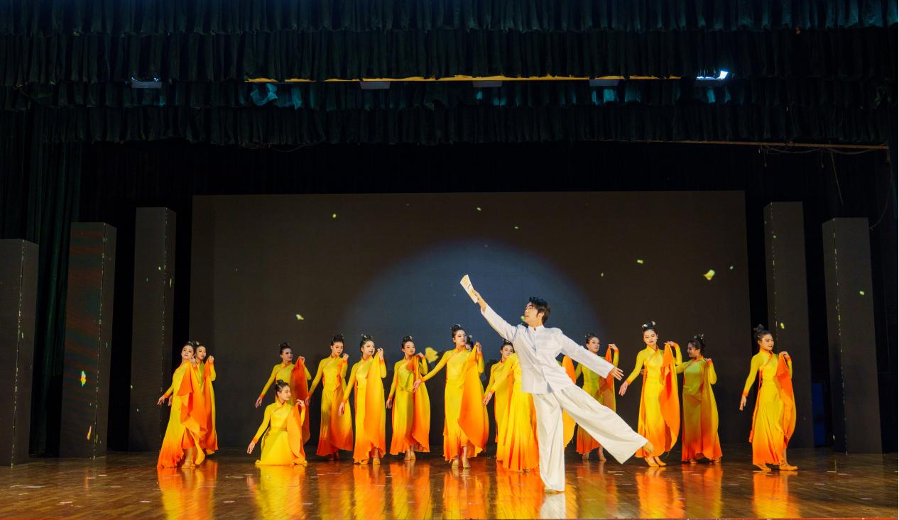 仪式现场,经济学院江泽浩与马克思主义学院曹誉馨合奏曲目《我爱你中国》,以悠扬旋律抒发家国情怀;大学生艺术团表演舞蹈《从来银杏不负秋》,用优美舞姿展现青春风采。