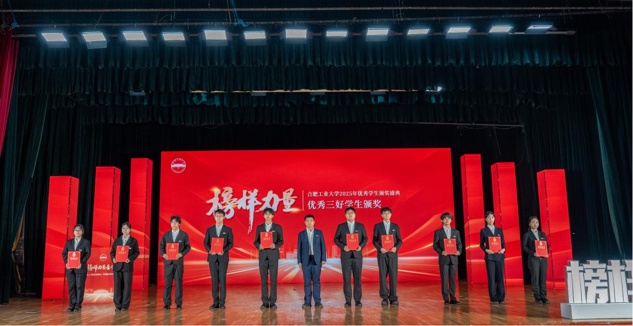 典礼伊始,全体师生齐唱国歌,共同观看优秀学生事迹短片《榜样》,在榜样事迹中感悟奋进力量。颁奖仪式紧扣育人导向,分为“青春奋斗·星火成炬”“励行争先·挺膺担当”“立心铸志·向新而行”三个篇章有序推进。胡笑旋为国家奖学金、国家励志奖学金获奖代表颁发荣誉证书;党委宣传部部长钟小要为大学生年度人物、十佳大学生颁奖;党校常务副校长、党委组织部副部长汪绪吉为优秀学生干部、优秀三好学生、优秀学生奖学金获奖代表颁奖;宣城校区学生工作办公室主任盛义保为先进班级、先进寝室获奖代表颁奖。党委学生工作部部长李丽鹏宣读《合肥工业大学2025年学生先进集体和先进个人表彰名单》。