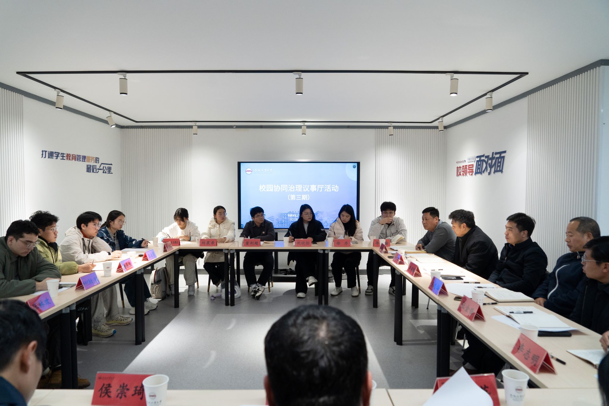 作为学校搭建的学生参与校园协同治理的平台,“校园协同治理议事厅”活动自创办以来,始终聚焦学生急难愁盼问题,依托校园协同治理学生团队常态化问计问需问效。此次活动延续了“面对面沟通、心贴心服务”的活动宗旨,进一步畅通了学生与职能部门的沟通渠道,细化了共治共享的实践路径,助力学校不断完善服务育人体系,共建更加和谐美好的校园环境。