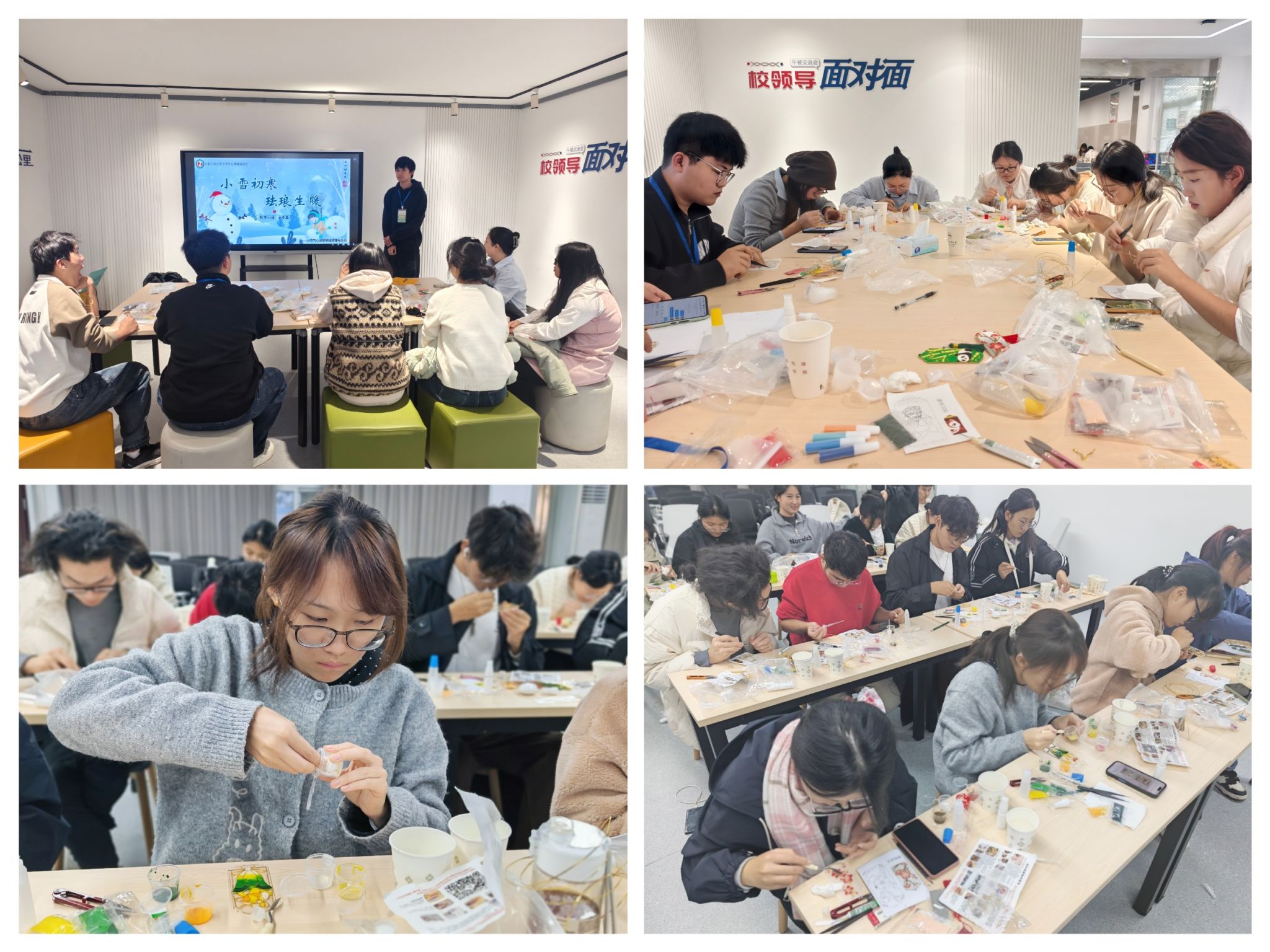 本次“小雪初寒,珐琅生暖”活动延续了“时节心语”系列将传统节气文化与心理健康教育相融合的特色,以掐丝珐琅作为创意媒介,将手工艺术与表达性疗愈相结合,不仅为同学们提供了探索内心情感与释放压力的创造性方式,还让大家在动手实践中感悟“蓄势藏精”的节气智慧。在传统节气与现代手工艺的交融中传承文化、滋养心灵,助力学子在渐冷的寒冬里守护内心的温暖,以更加平和、明朗的心境迎接未来的考验。