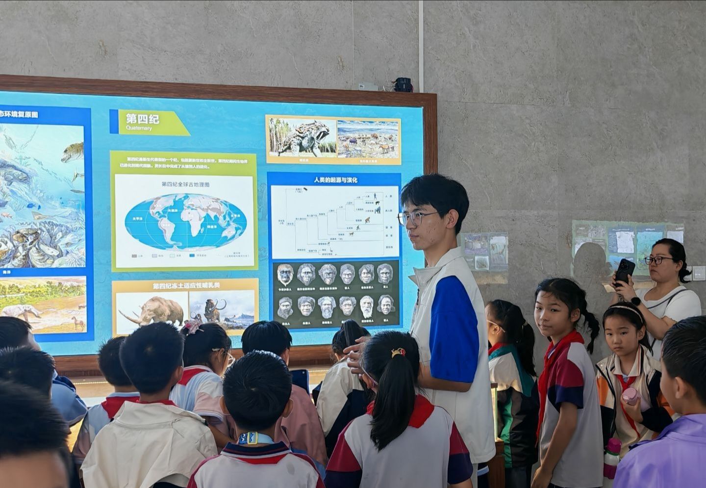 感受智能科技,探索地球科学。在智能微馆,机械臂的精准操作与大疆无人机的展示引来小朋友们的阵阵惊叹,老师的详细讲解让大家切身感受到智能科技的高效与魅力。在地质博物馆,志愿服务队的同学为孩子们普及了地质变迁、资源集聚、矿石奥秘以及矿业发展等方面的知识,让小学生们对地球科学有了更加全面的认识。