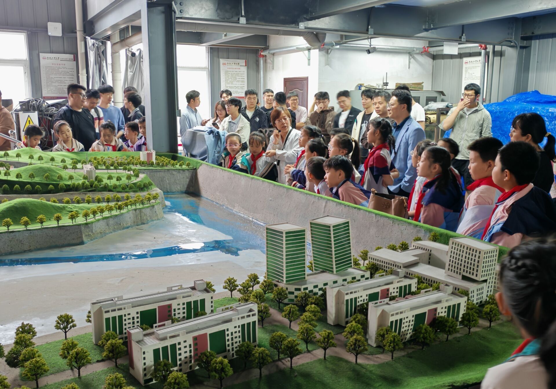 探秘水利工程,体验结构科研。在水利实验室,小朋友们参观了大型三级水利枢纽模型,听取了讲解员的细致介绍,并就感兴趣的问题踊跃提问,在互动中加深了对水利知识的理解。在结构实验室,大家近距离观摩“环境耦合大型科学实验装置”,了解到该装置的应用情况,并学习了地震原理与建筑抗震知识,拓宽了科学视野。
