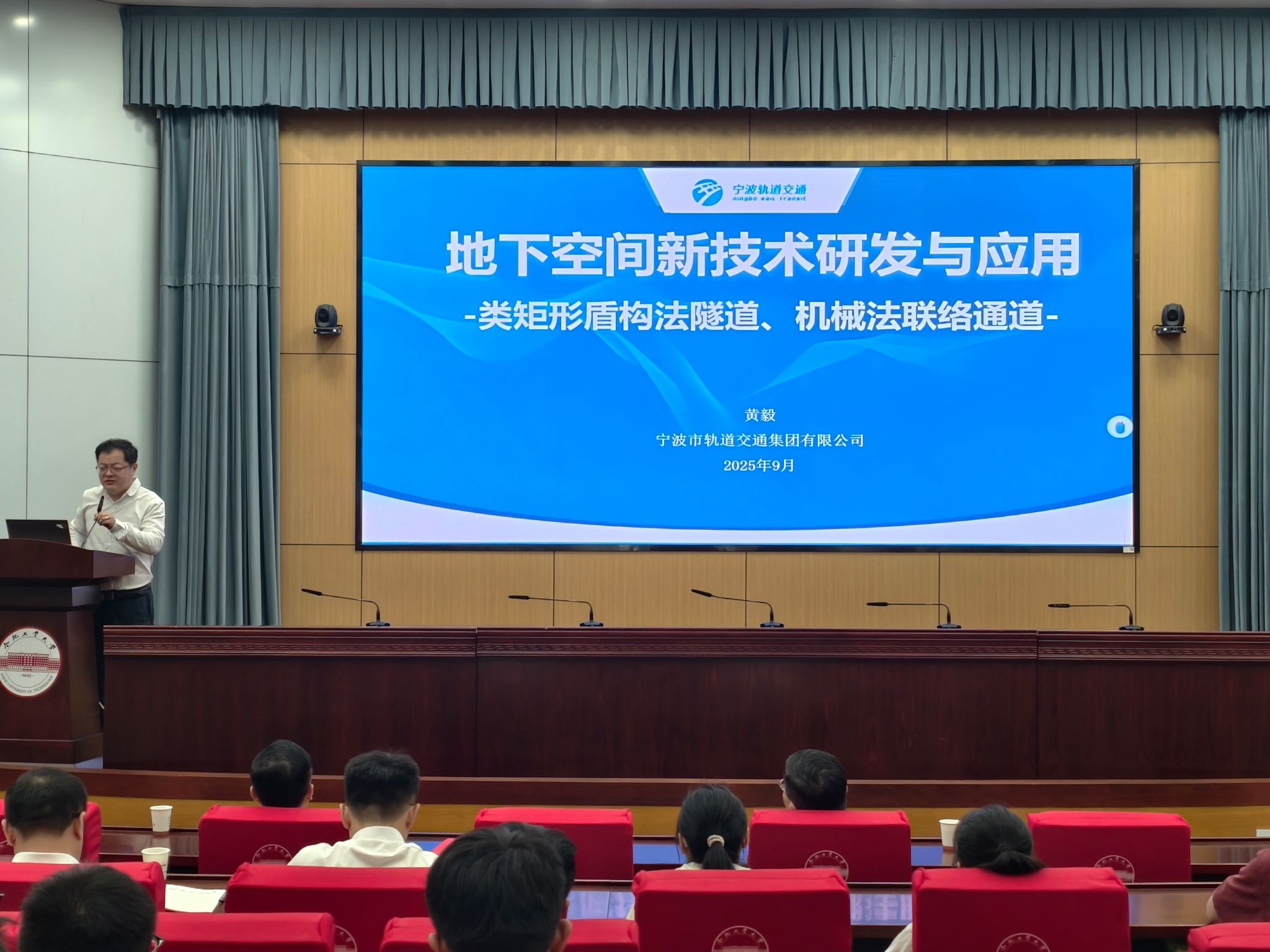 9月14日上午,土木与水利工程学院在学术会议中心一楼报告厅开展学术报告会,特邀全国劳动模范、宁波市轨道交通集团有限公司首席专家黄毅作题为“类矩形盾构研发与应用”的专题报告,学院负责人和200余名研究生参加报告会。