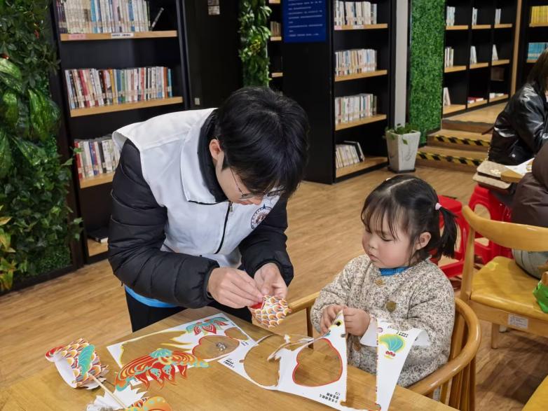 活动伊始,志愿者们以生动的讲解带领孩子们走进鱼灯世界,讲述鱼灯承载的美好寓意与文化故事。随后,志愿者们手把手指导孩子们一步步完成鱼灯制作。从勾勒鱼身轮廓,到粘贴彩色鳞片;从组装灯架到固定灵动鱼尾。孩子们专注学习、细心操作,在剪裁、拼贴、组装中体悟传统手工艺的巧思与温度。一盏盏色彩斑斓的鱼灯在孩子们手中逐渐成形,映衬着张张笑脸,点亮了整个活动现场。孩子们兴致勃勃地举起自己的作品互相展示,欢声笑语洋溢其间,成为春日里最温暖的风景。