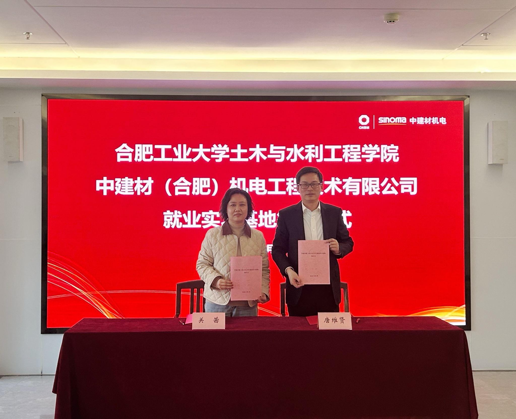双方代表签订了《就业实习基地协议书》,并举行了授牌仪式。中建材机电和土木学院相关负责同志参加活动。
