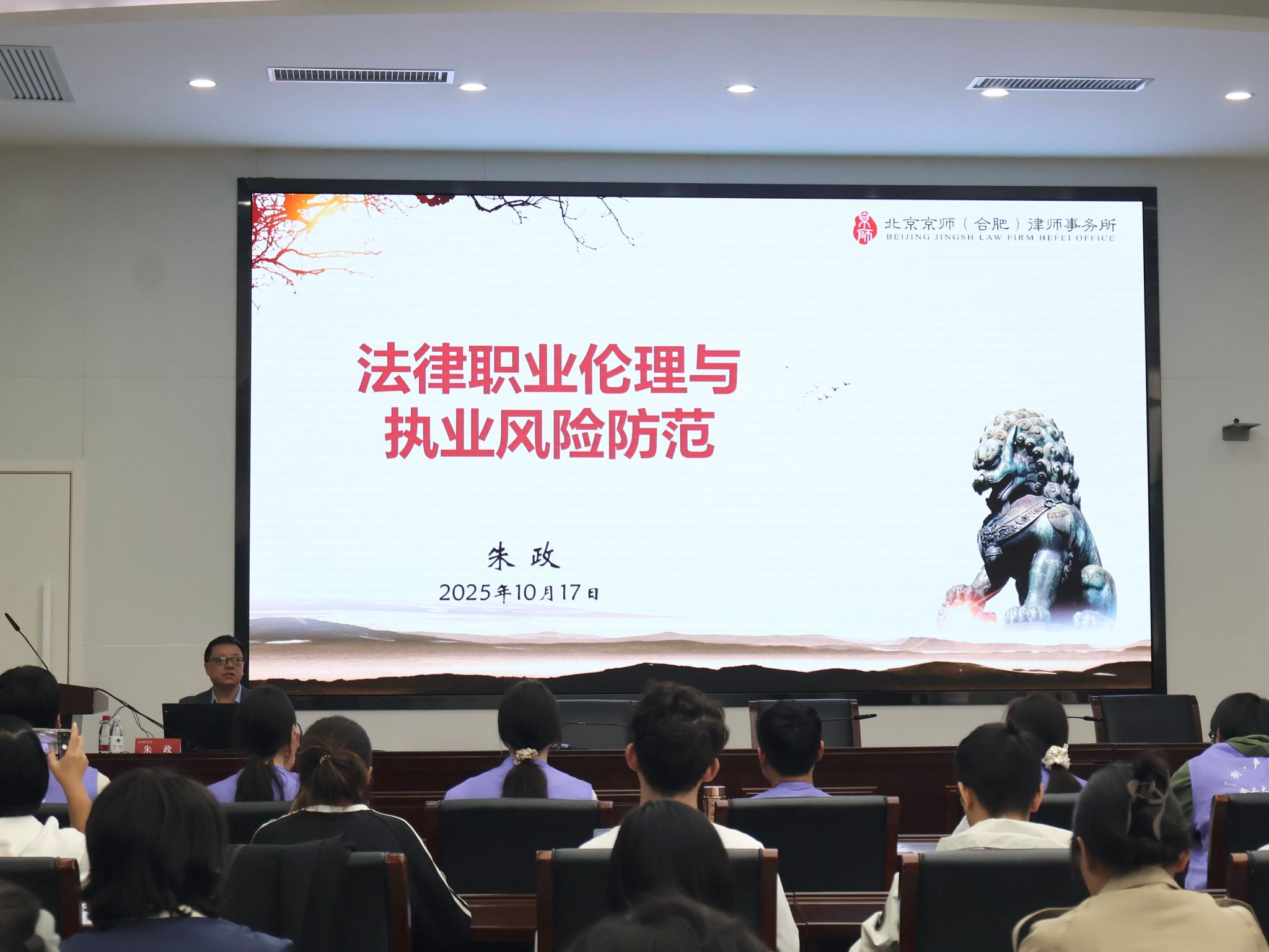 为防范基于职业伦理失范的直接风险和基于执业行为瑕疵的衍生风险,10月17日下午,文法学院在学术会议中心三楼报告厅举行第308期博睿沙龙活动。活动特邀合肥工业大学硕士研究生兼职导师、北京京师(合肥)律师事务所主任朱政作“法律职业伦理与职业风险防范”专题讲座,文法学院80余名研究生参与本次活动。