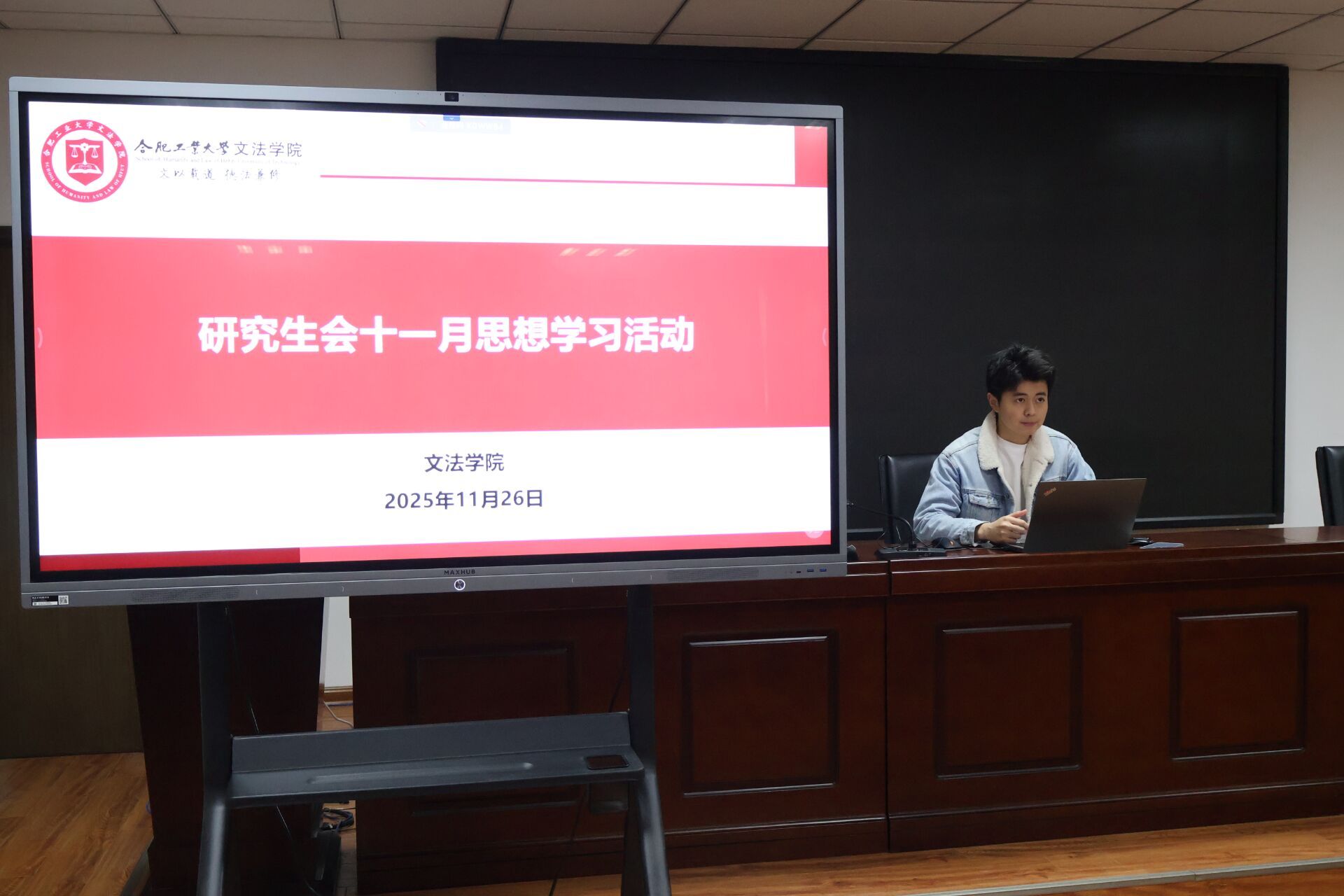 为进一步筑牢研究生理想信念根基,强化思想政治引领,11月26日上午,文法学院在学院楼509会议室开展了研究生会十一月专题思想学习活动。本次会议由文法学院主席团成员范宝文主持,院研究生会全体成员参加。