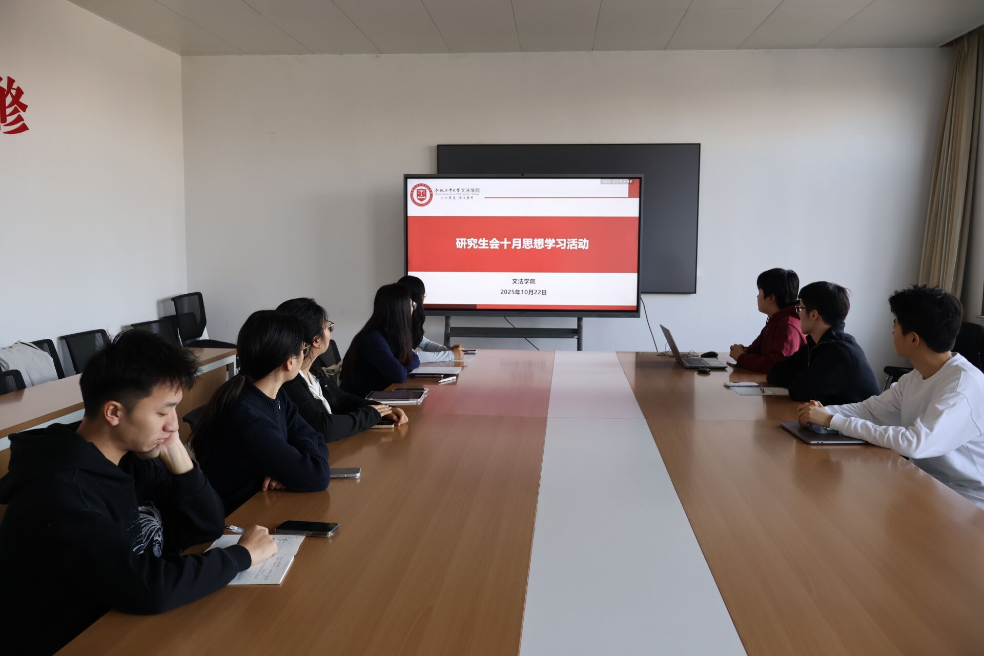 为深化研究生思想政治引领,筑牢理想信念根基,10月22日上午,文法学院在学院楼310会议室举办研究生会十月思想学习活动。本次活动由文法学院主席团成员庄嘉晟主持,学院研究生会全体成员参与。