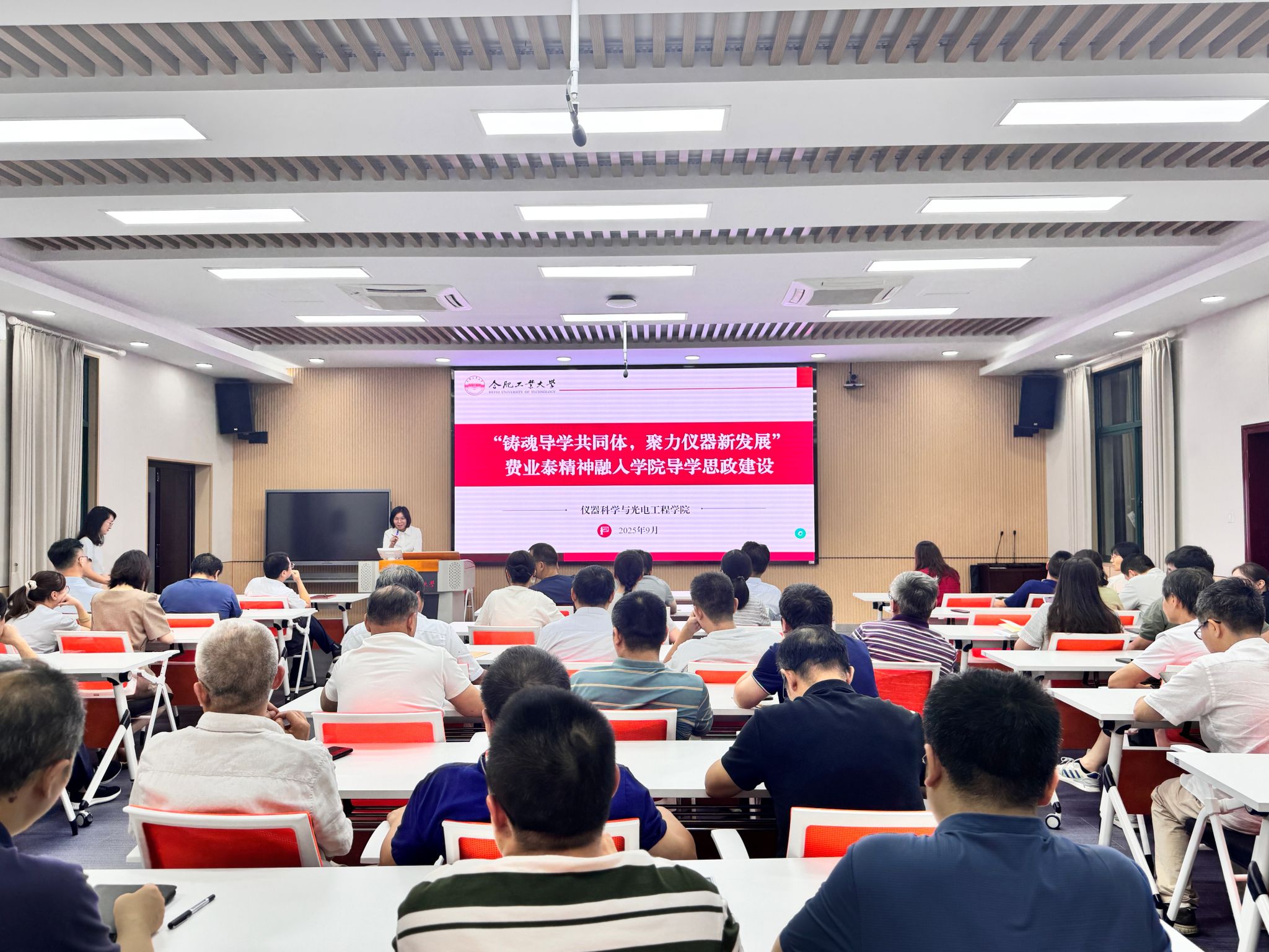 全院教师大会上,学院教学副院长围绕研究生导师职责落实展开详细解读,先后传达教育部《研究生导师指导行为准则》的通知、合肥工业大学《全面落实研究生导师立德树人职责实施细则(试行)》核心内容,并宣读《传承费业泰精神,锻造卓越导学共同体——仪器科学与光电工程学院导学思政建设与导学生态提质实施方案》,方案中明确提出“十个一”工作举措,从制度建设、文化培育、实践推进等多维度发力,引导全院教师切实履行研究生导师立德树人重要职责,将育人使命贯穿教学科研全过程。恰逢合肥工业大学建校 80 周年重要契机,学院以此为抓手,积极整合校内外各方资源,进一步拓展育人共同体覆盖面,凝聚协同育人合力,学院结合自身学科特色与导学工作实践,精心撰写《卓越导学十条》及《卓越导学共同体倡议书》,并向全院师生发出倡议。