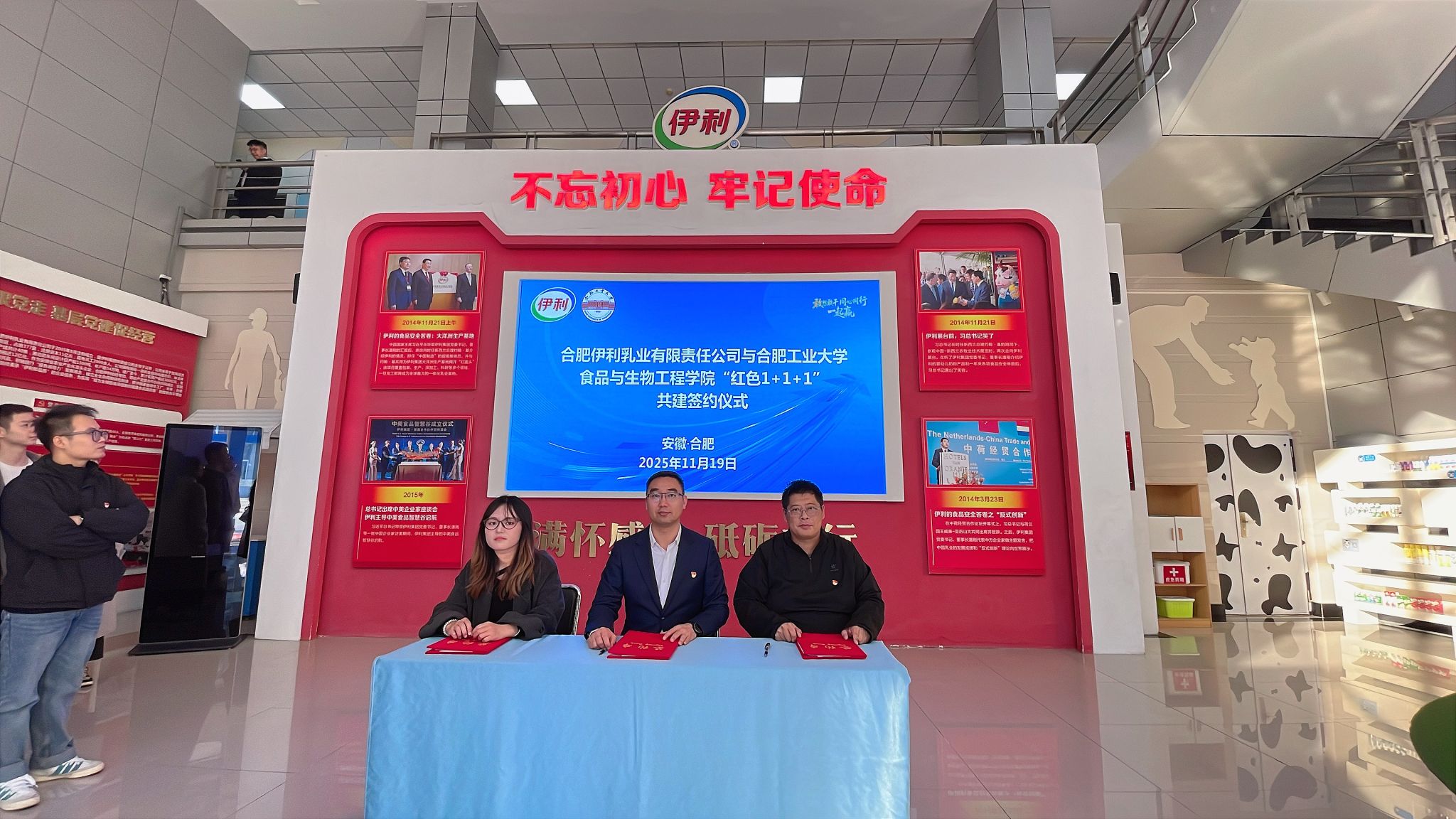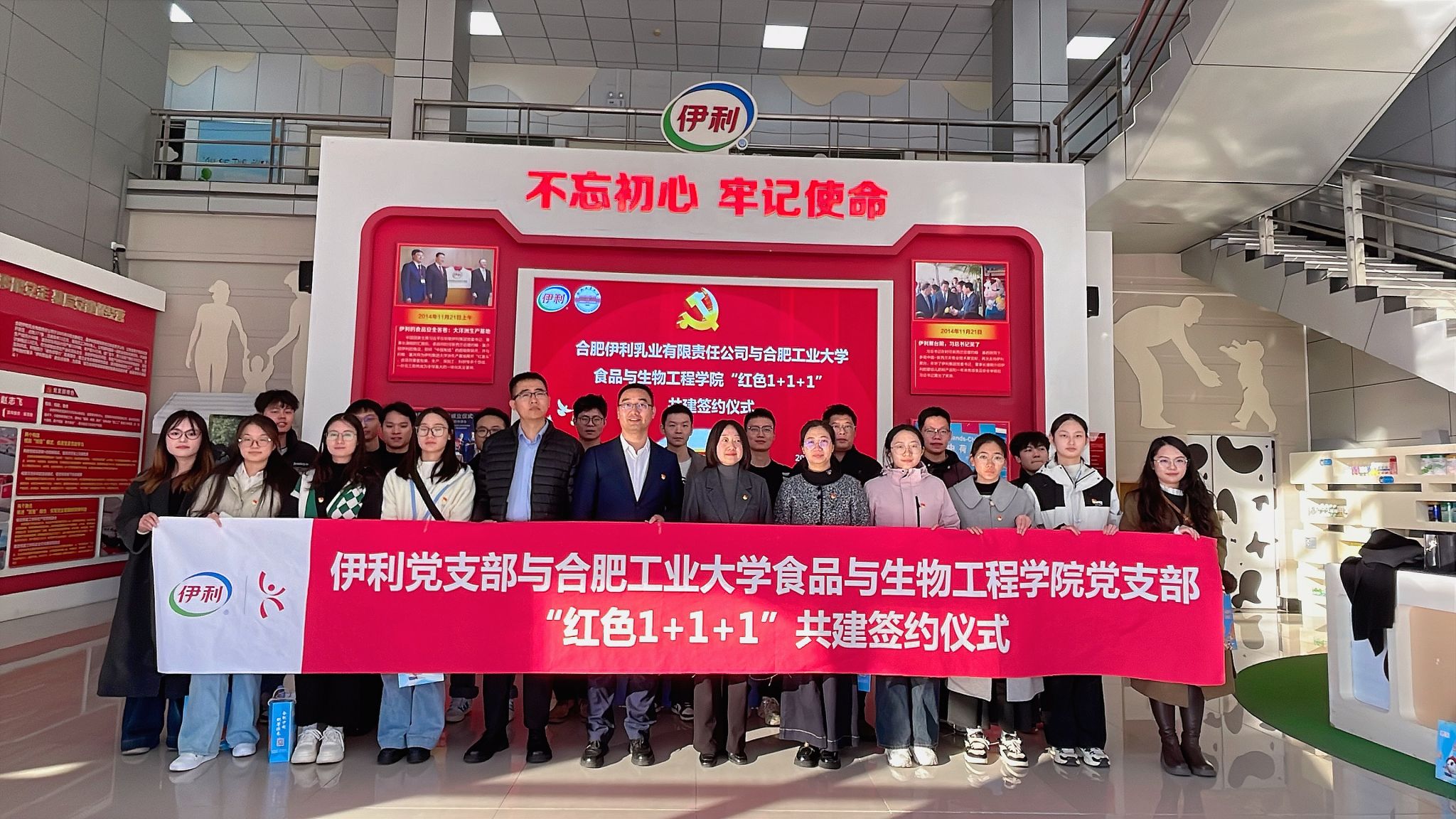 为进一步深化校企合作,推动产学研融合,11月19日下午,合肥工业大学食品与生物工程学院师生代表近二十人,赴合肥伊利乳业有限责任公司参观交流,并成功举行“红色1+1+1”共建签约仪式。合肥伊利工厂副总经理王建、食品安全总监王娟、人力资源经理杨帆、食品与生物工程学院党委书记孙彩霞、食品科学与工程系党支部书记何述栋等代表出席活动。