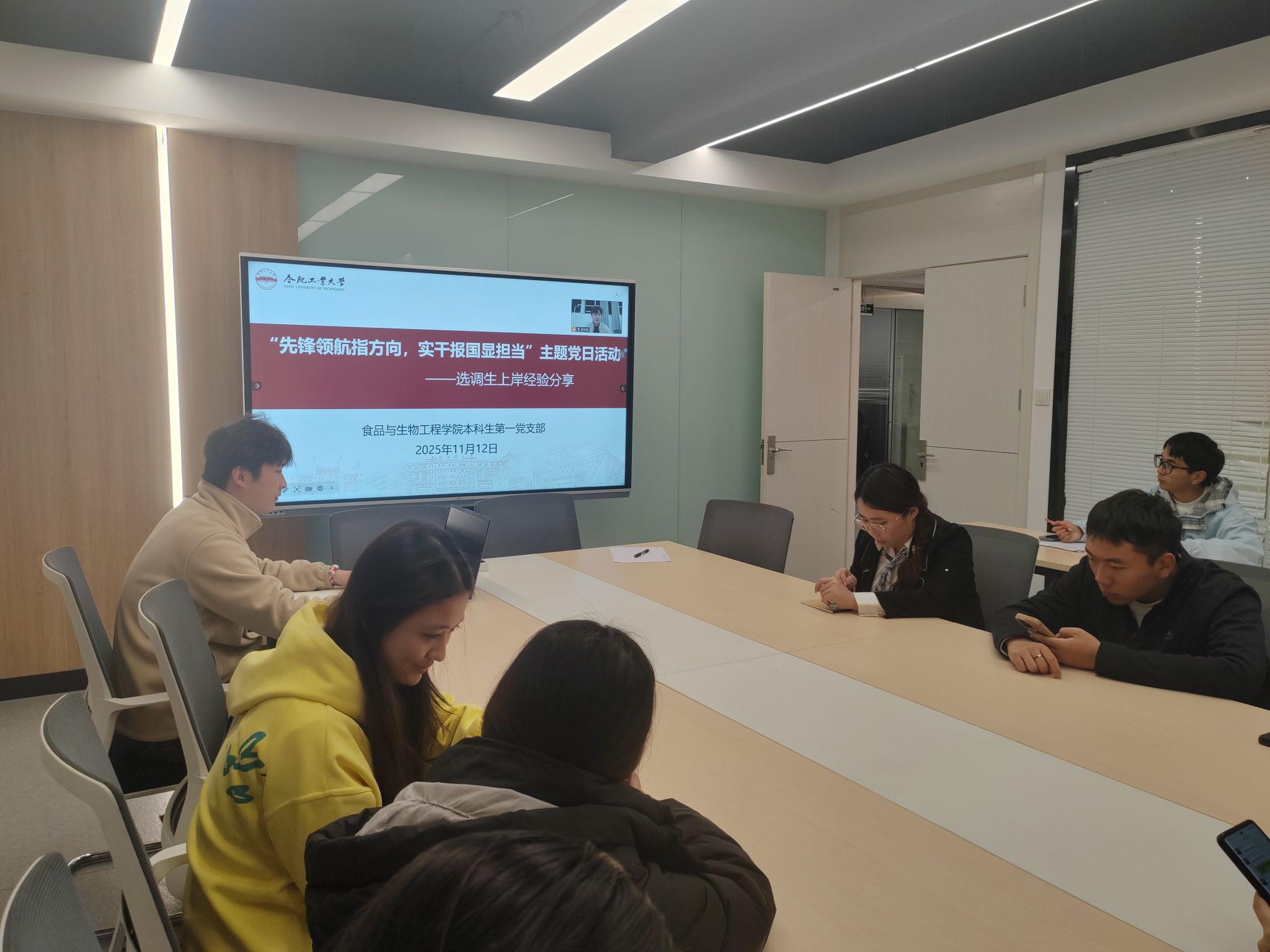 为扎实推进就业指导工作,发挥党员榜样先锋引领作用,11月12日-13日,食品与生物工程学院本科生第一党支部面向学院全体2026届报考选调生和国考的学生,组织“先锋领航指方向,实干报国显担当”就业朋辈帮扶活动。学院考取选调生和通过国考的优秀校友王璐佳、冶建文和杨子康受邀参与线上分享和指导,毕业班20余名学生在翡翠湖校区二号学生社区会议室参加。活动由该党支部副书记赵宏嘉主持。