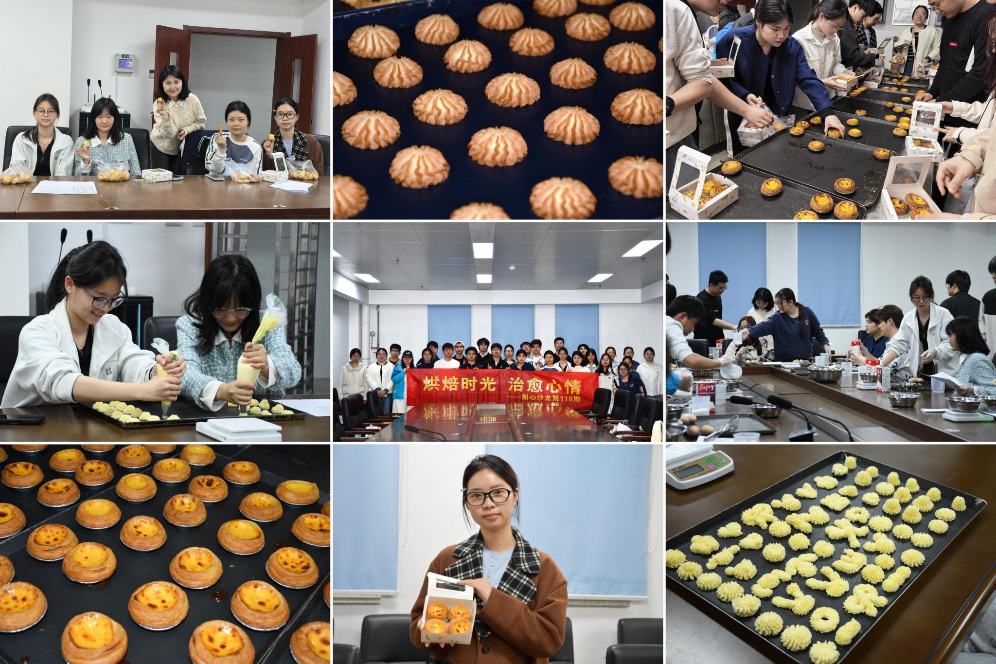 4月8日,物理学院“烘焙时光 治愈心情”主题烘焙活动在屯溪路校区饮食服务中心4楼培训室顺利举办。本次活动旨在帮助同学们舒缓科研学业压力、呵护心理健康,30余名同学参与本次活动。