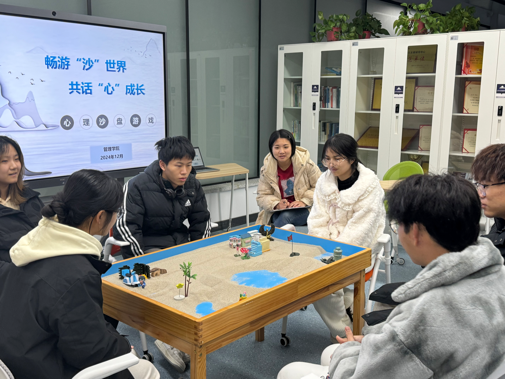 12月11日下午,管理学院在工程管理与智能制造研究中心沙盘室举办“畅游‘沙’世界,共话‘心’成长”沙盘体验活动,辅导员黄倩主持。