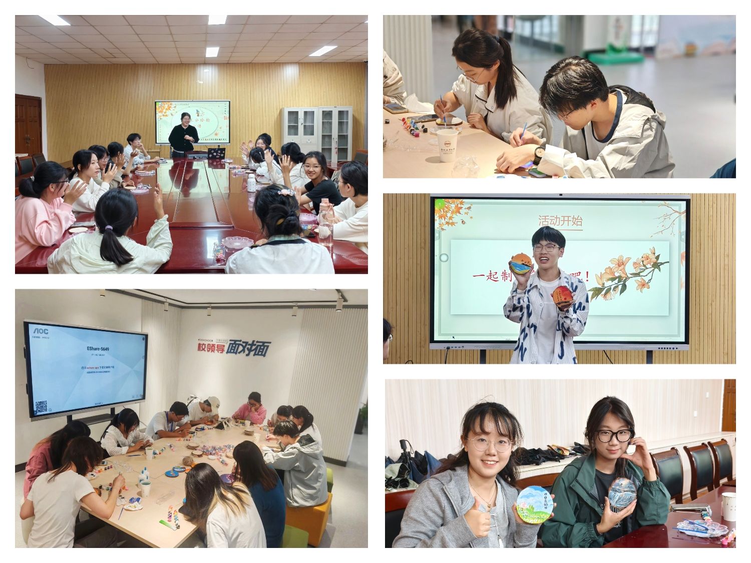 创作完成后,霍禺汝老师鼓励学生给自己的作品命名,并结合表达性艺术治疗理念,阐述了画面背后的情绪故事与成长感悟。在倾听与共鸣中,同学们不仅深化了对自我的认知,也增强了彼此之间的心理联结与支持感。活动最后,全体成员手持各自完成的年轮画作品合影留念,定格了专属这个秋日午后的心灵风景。