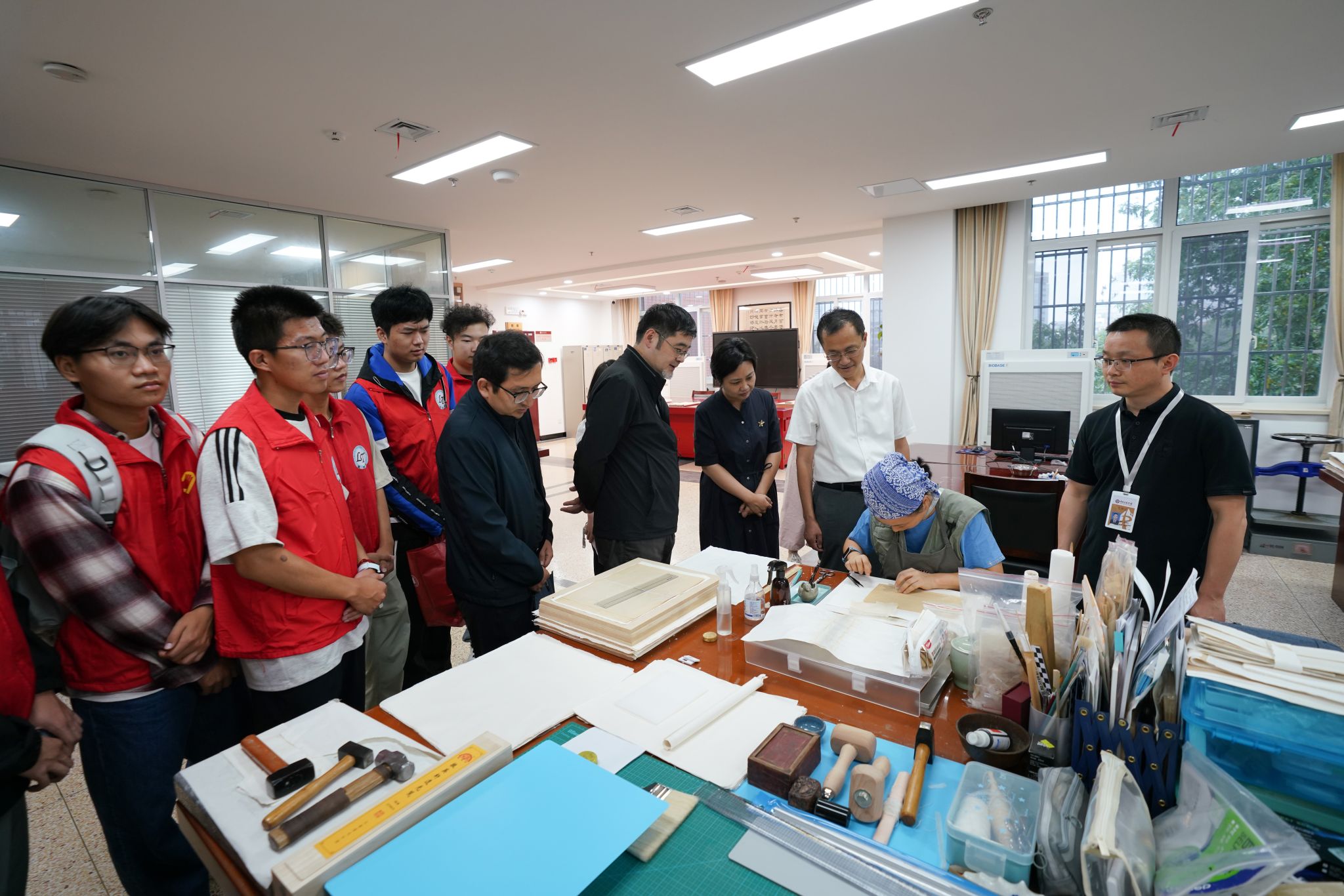 最后,在相关负责人的带领下学院一行实地参观了安徽省图书馆国家级古籍修复中心。