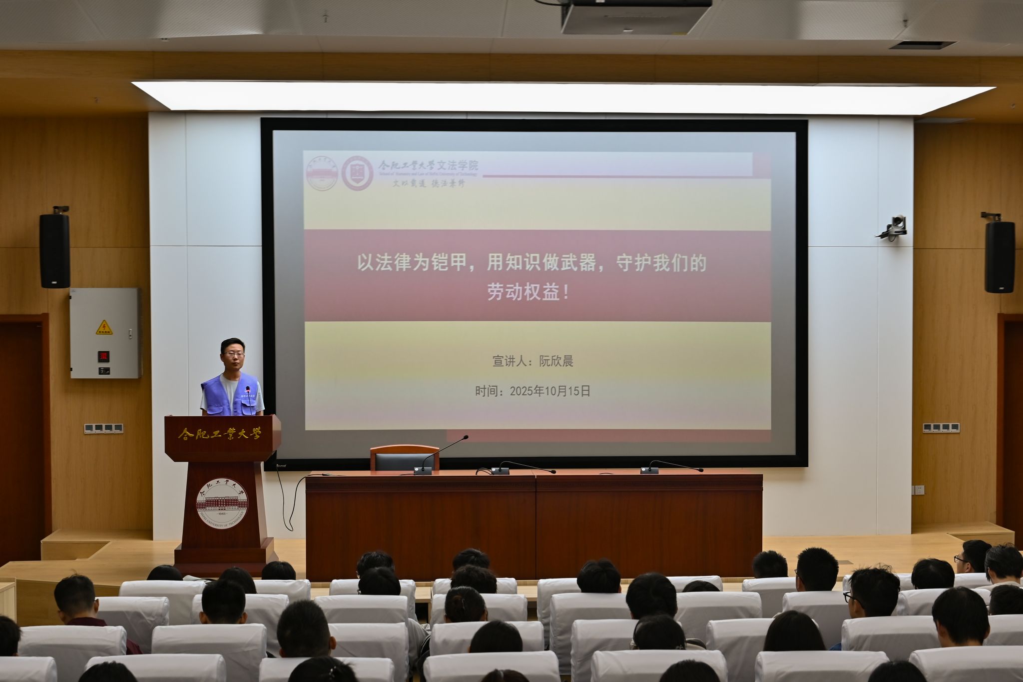 为帮助同学们提升劳动权益保护意识,10月15日下午四点,文法学院“衡声·普法行”宣讲团在屯溪路校区工程管理与智能制造研究中心第一报告厅举行了第24期普法宣讲活动。本次活动由宣讲团成员阮欣晨主讲,文法学院与管理学院、土木与水利工程学院研究生共同参与。