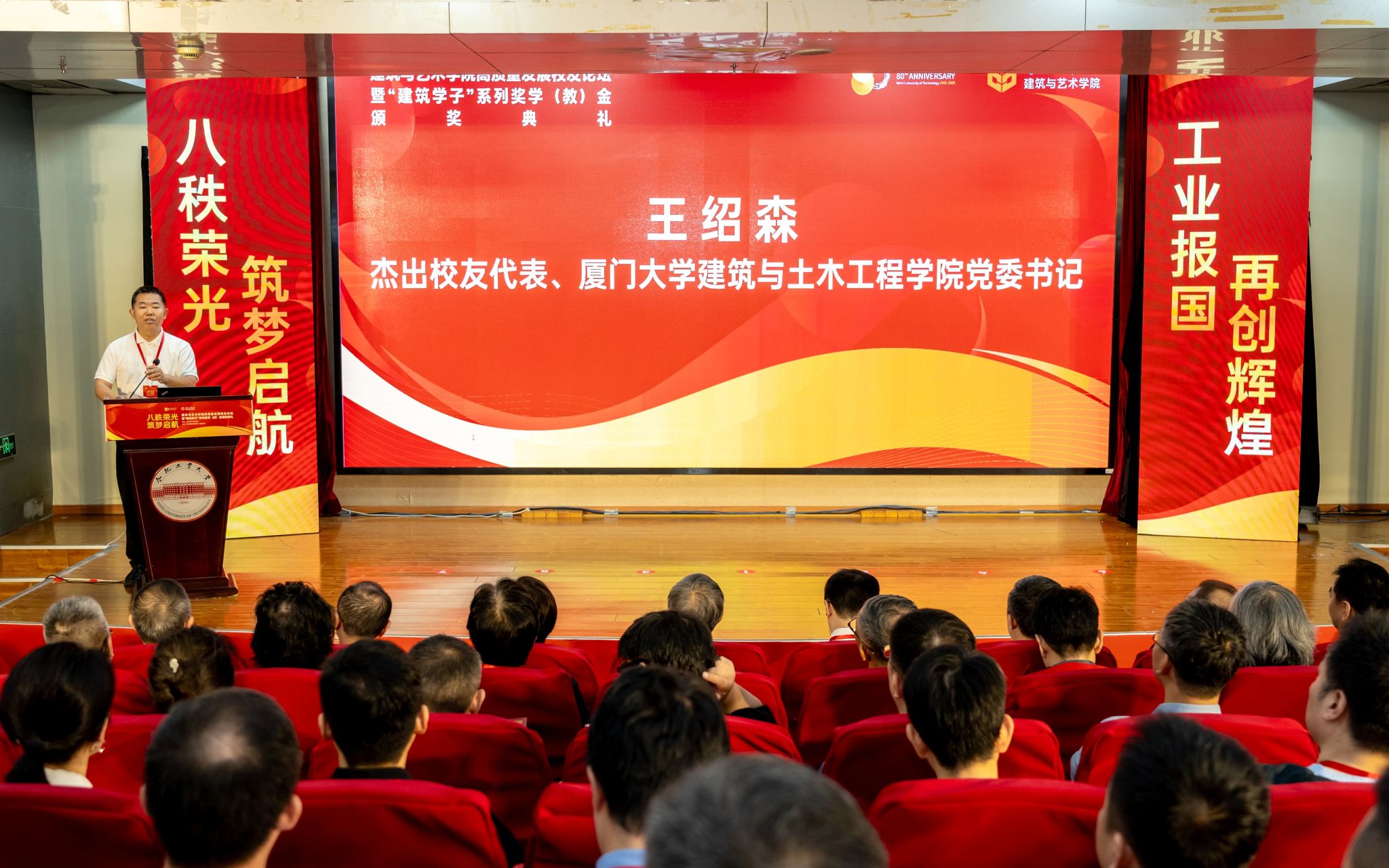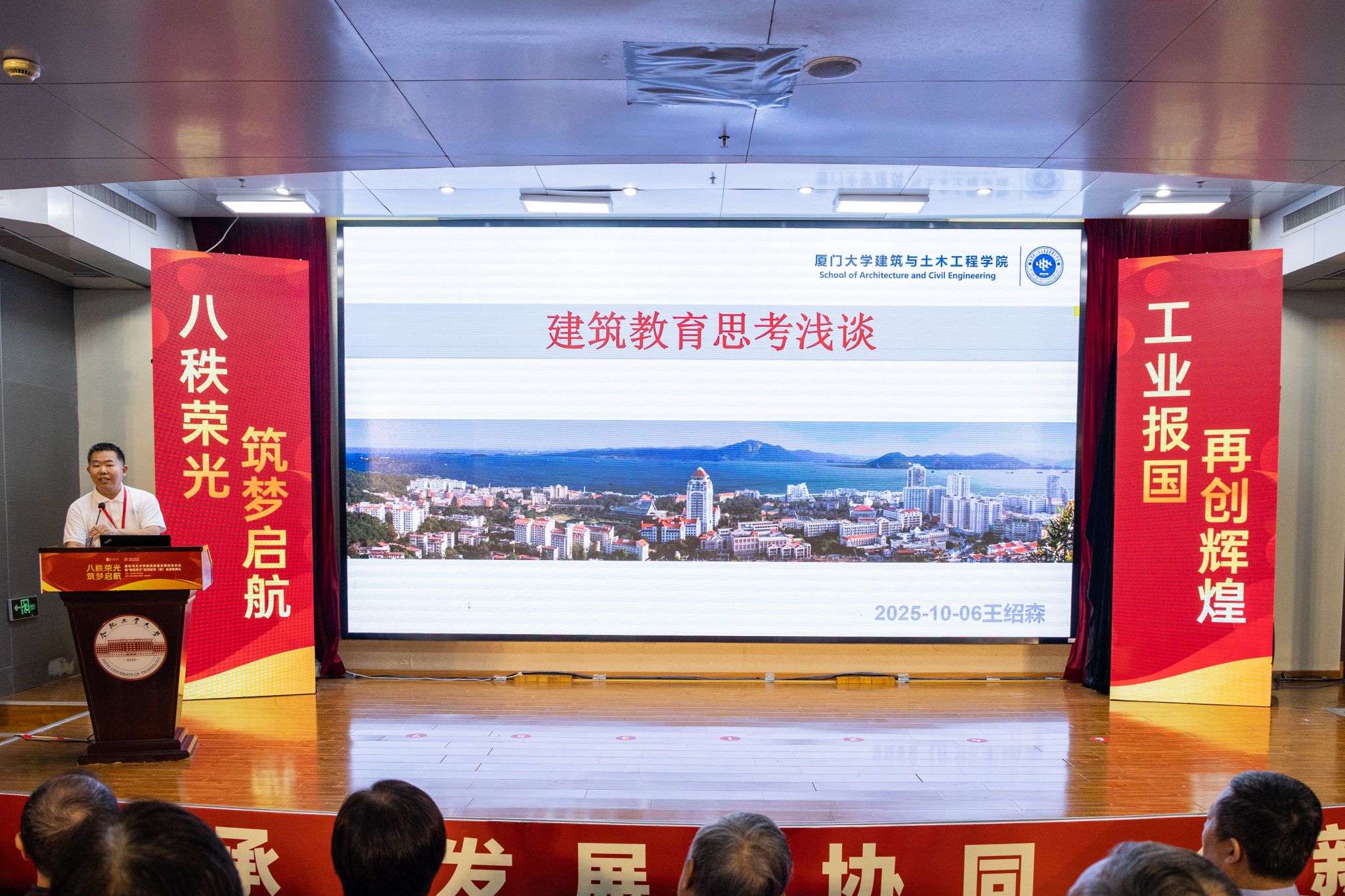 1983级校友、厦门大学建筑与土木工程学院党委书记王绍森作为杰出校友代表致辞。他深情回顾了在母校的求学经历,感恩母校老师的谆谆教诲和悉心栽培,祝愿母校和母院培养更多的优秀人才。院长宣蔚回顾了学院67年的发展历程,深情感谢校友们对母院的持续支持。