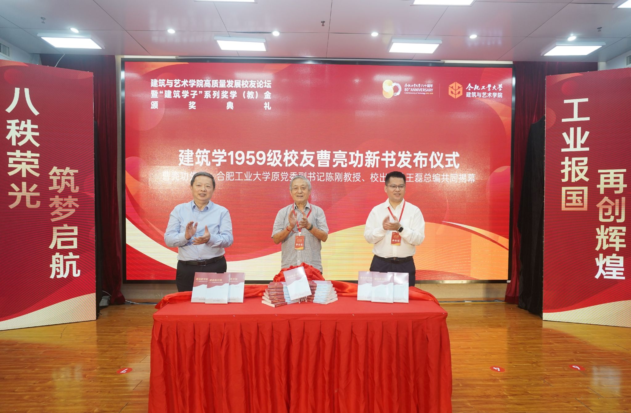 会上,举行了1959级校友、当代中国百名建筑师曹亮功先生新书《建设新中国——一位建筑师的记忆与见证》发布仪式。曹亮功校友、合肥工业大学原党委副书记陈刚教授、校出版社王磊总编共同为新书揭幕。